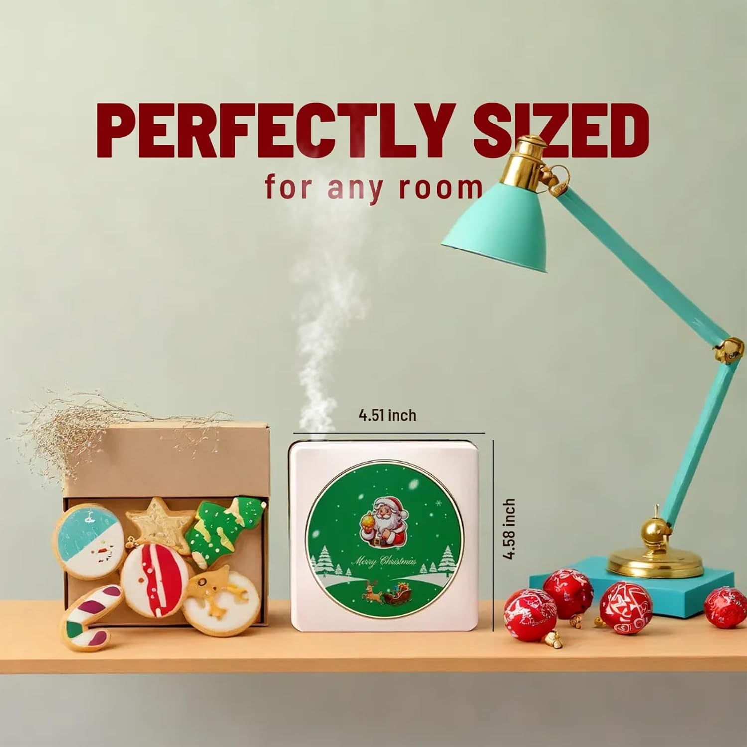 Cool Mist + Warm Glow — 50 ml capacity for steady essential oil diffusion paired with a cozy warm light, perfect for a relaxing holiday vibe.