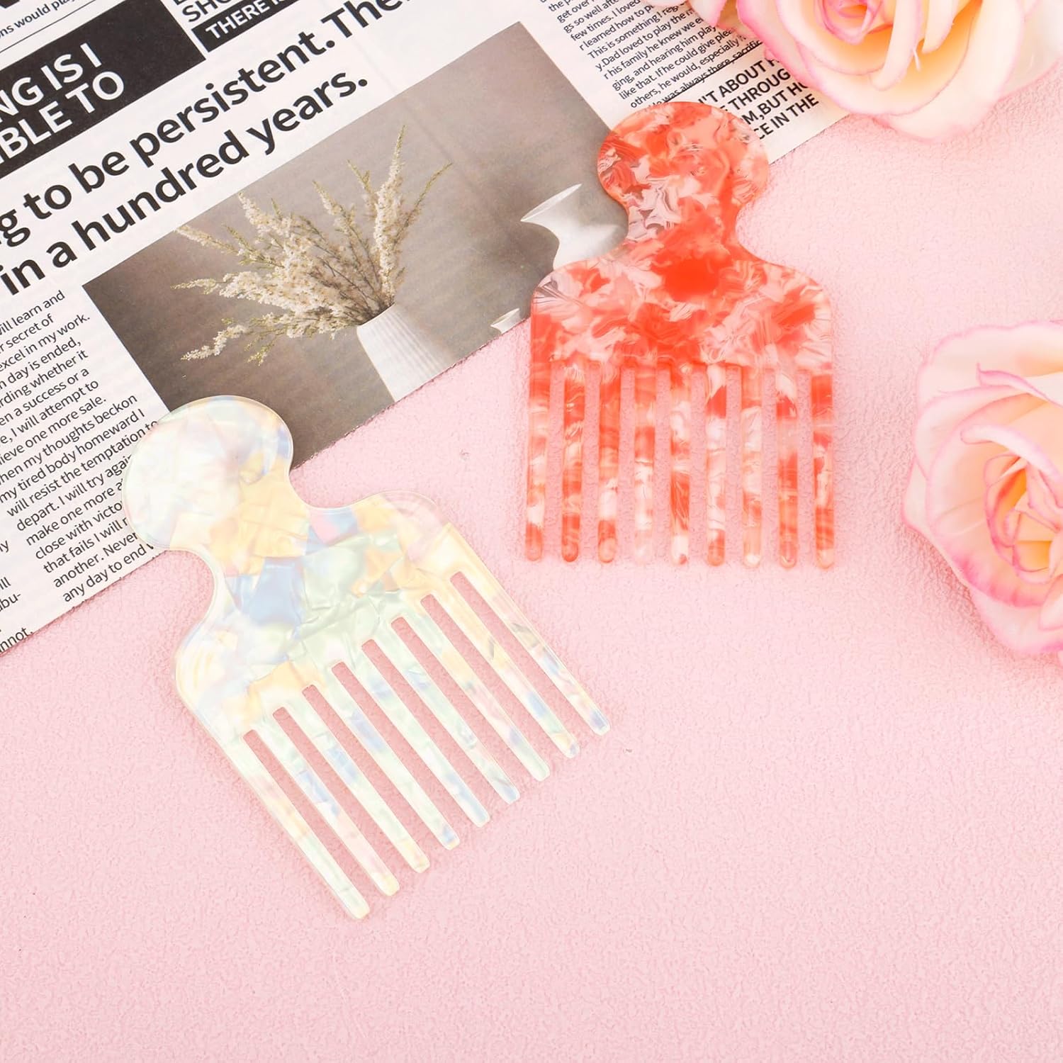 Package Contents: You will receive 2 pieces of styling combs in 2 colors, each measuring about 12x7cm/4.72×2.76in. Ideal for detangling, lifting, and volumizing curly, thick, or curly hair.
