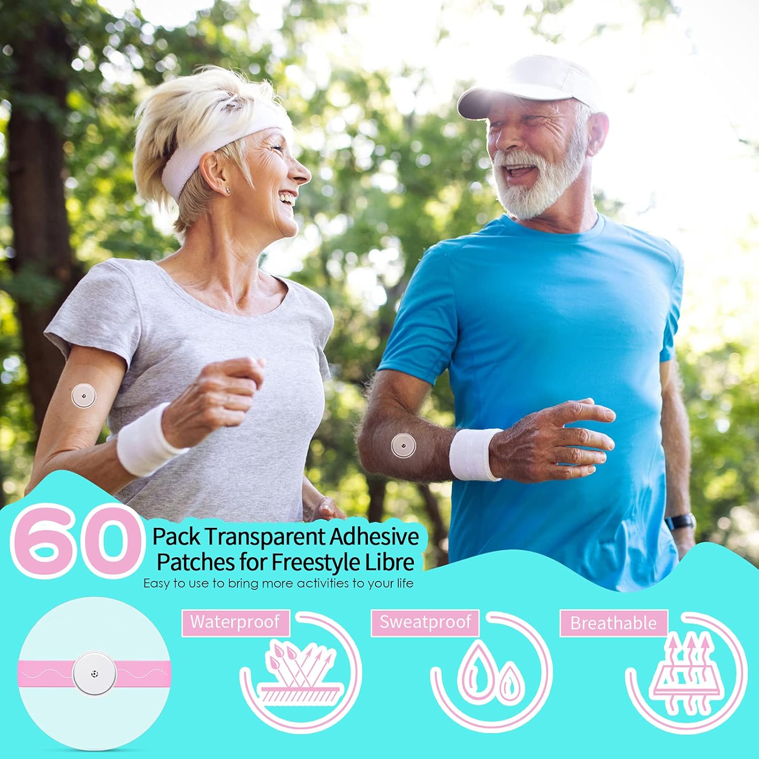 Waterproof and sweatproof: the CGM sensor patches are 2-layer design, waterproof and quick-drying, it can protect your sensor device when cycling, running, swimming, showering or doing other land and water activities, and can last up to 10 days or 10 times showers