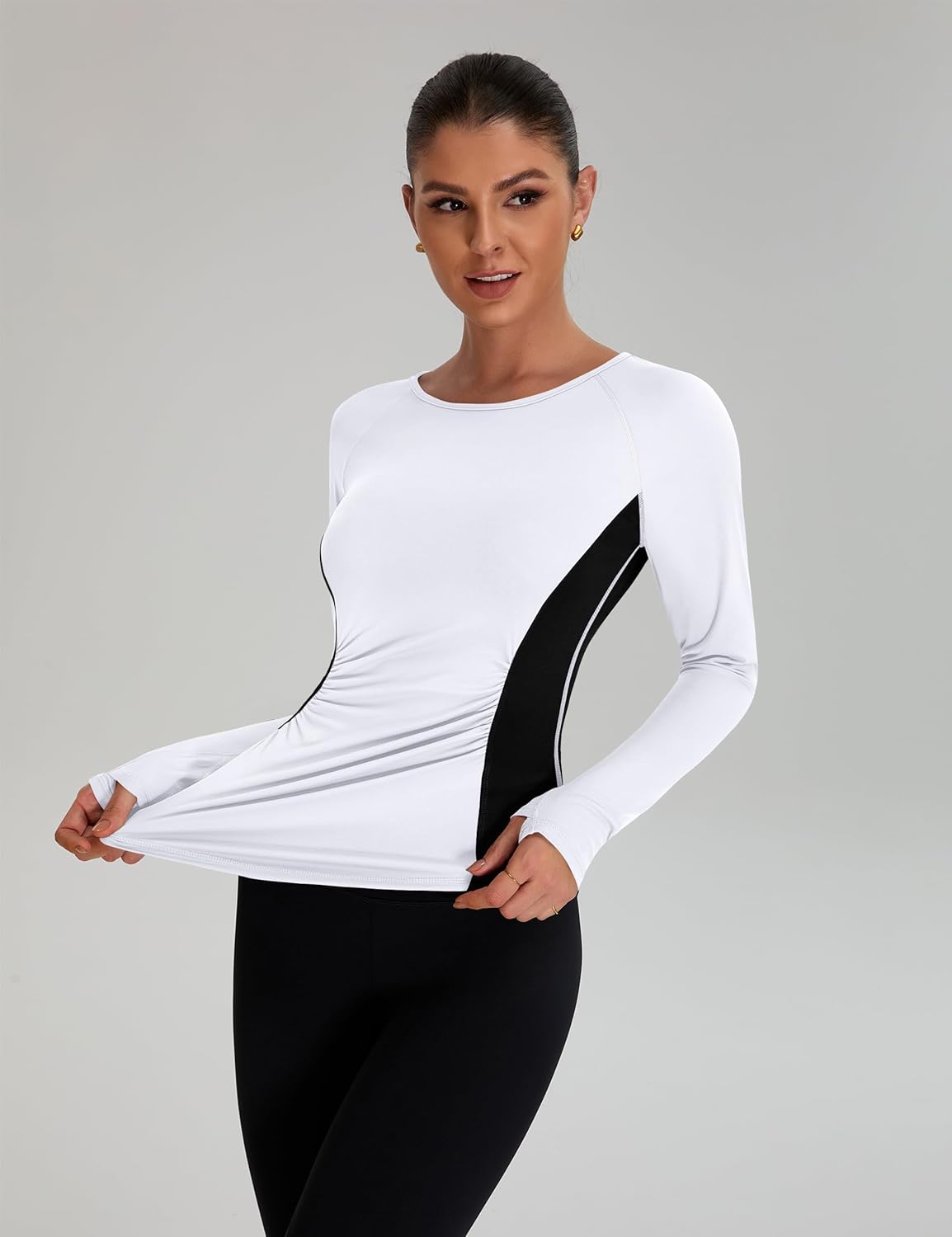BMJL Womens Workout Tops Active Long Sleeve T Shirt Color Block Slimming Fall Shirts Gym Clothes Woman Blouses Outfits