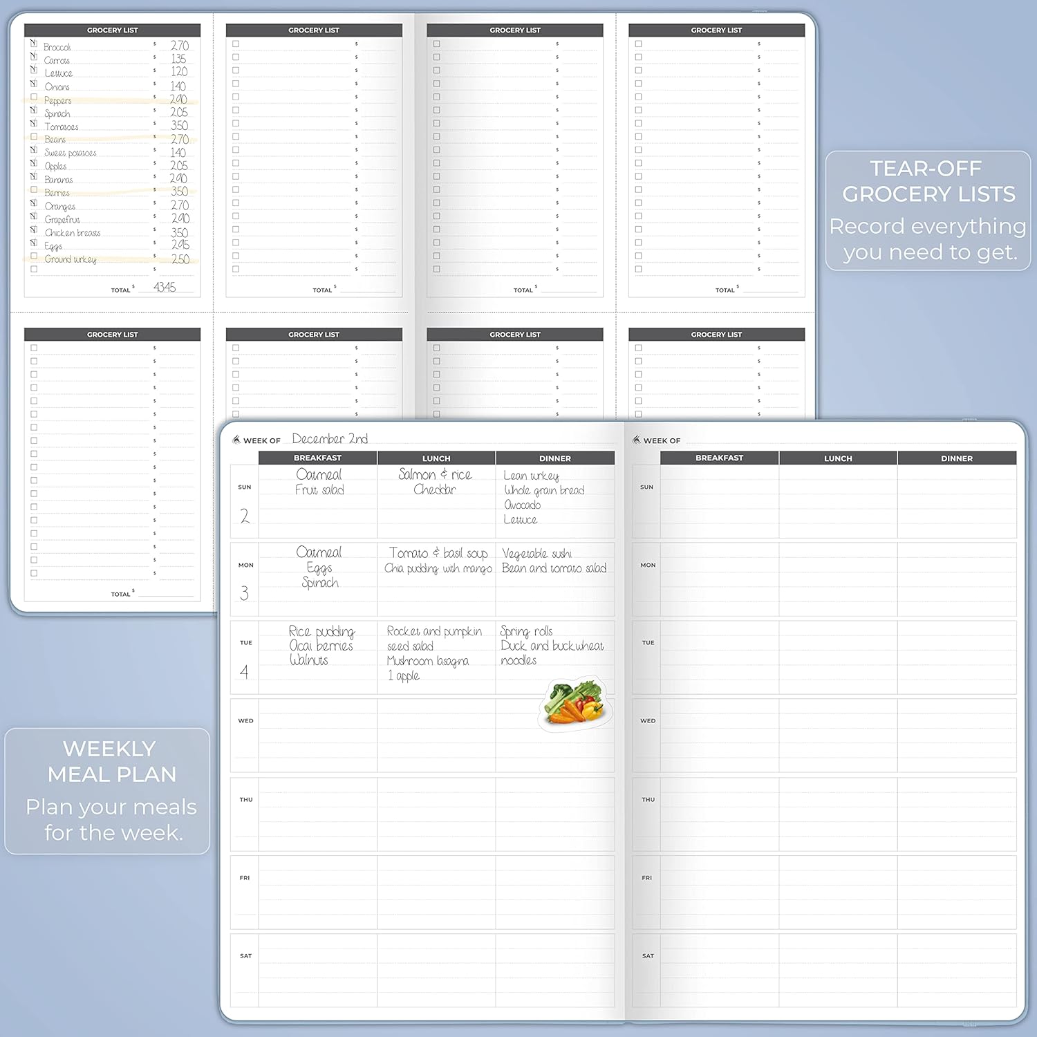 I love this book. It keeps me on track with my fitness goals and schedule and gives me a sense of accountability. It is a nice size and such a pretty blue color. It is durable and doesn’t bend easily which with how often I use it is surprising!