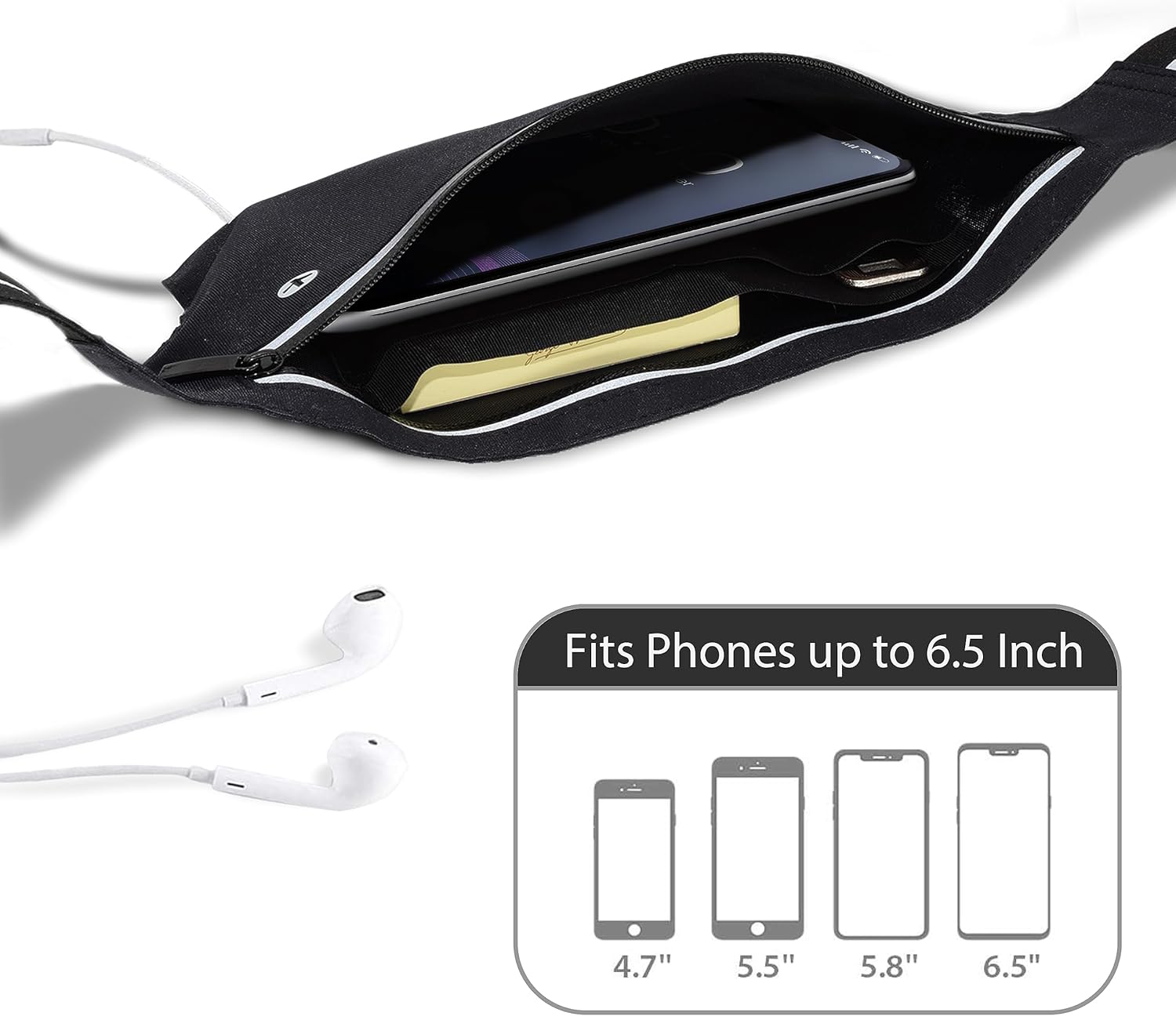 Fitter’s Niche UltraSlim Fanny Waist Pack – Water Resistant Bag, Reflective Elastic Belt – Fit 24 to 43inch Waists, Holds Phones up to 6.7inch – Ideal for Indoor & Outdoor Workouts, Exercises & Trips