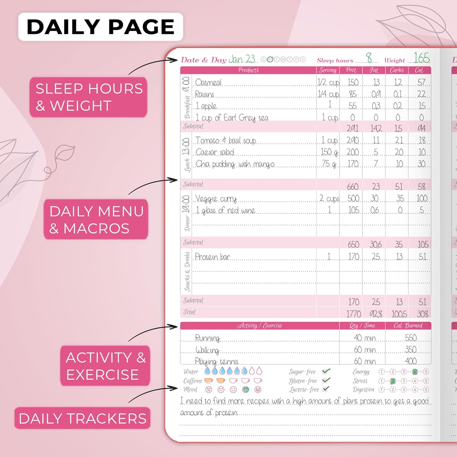 YOUR NUTRITION, FITNESS & HEALTH ALL IN ONE PLACE: This wellness journal is small but mighty – it has all the tools you need to set wellness and body goals and plan your way towards achieving them. Use detailed daily pages to plan your menu, calculate your daily nutrients, and track vital daily data and physical activity. Use monthly calendars to plan your wellness routine and decide what goals and activities to focus on each month.