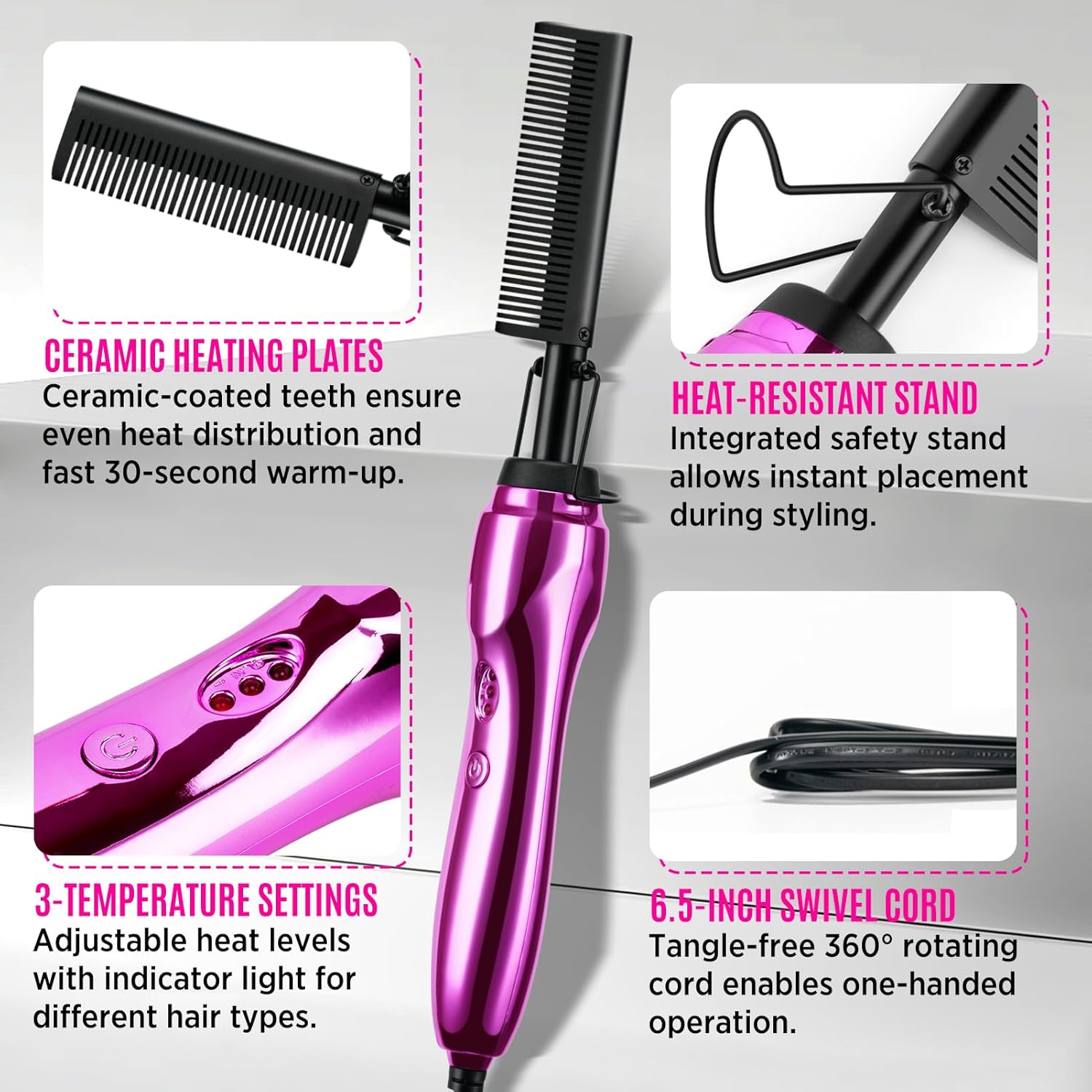Easy-Grip Straightening Comb: The ergonomic hot comb for women hair features a smooth surface plate that wipes clean instantly. Its lightweight design ensures tangle-free styling and effortless maintenance
