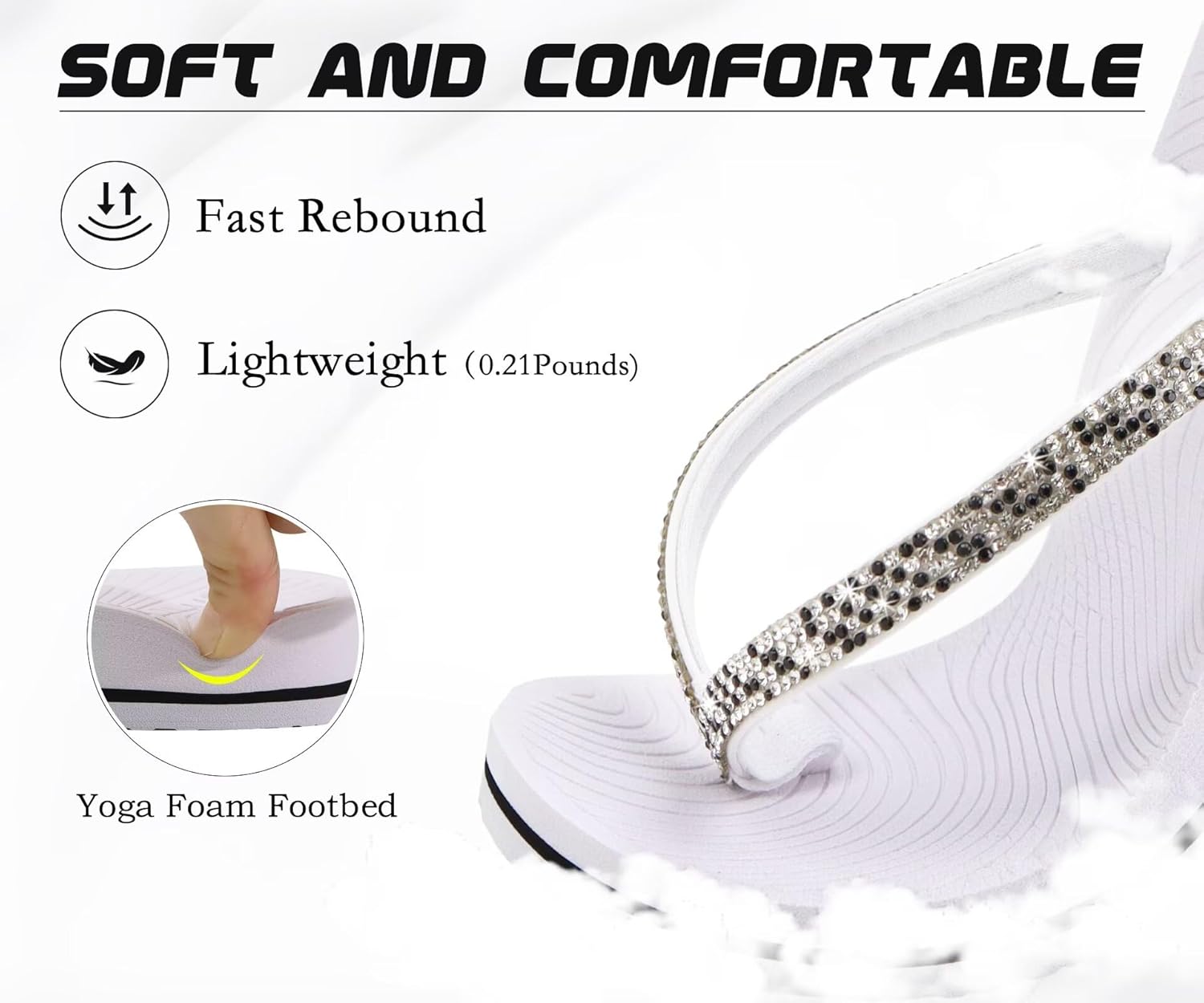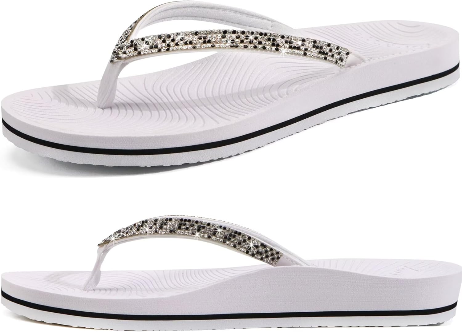 KuaiLu Women’s Rhinestone Flip Flops with Comfort Arch Support Yoga Mat Cushion Sandals Fashion Summer Beach Travel Orthotic Walking Thong Sandles Slip on Plantar Fasciitis Indoor Outdoor Shoes