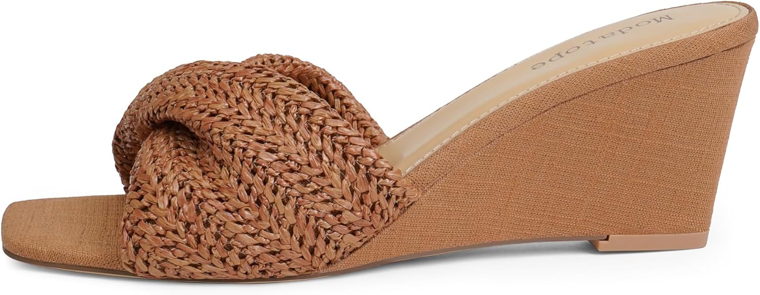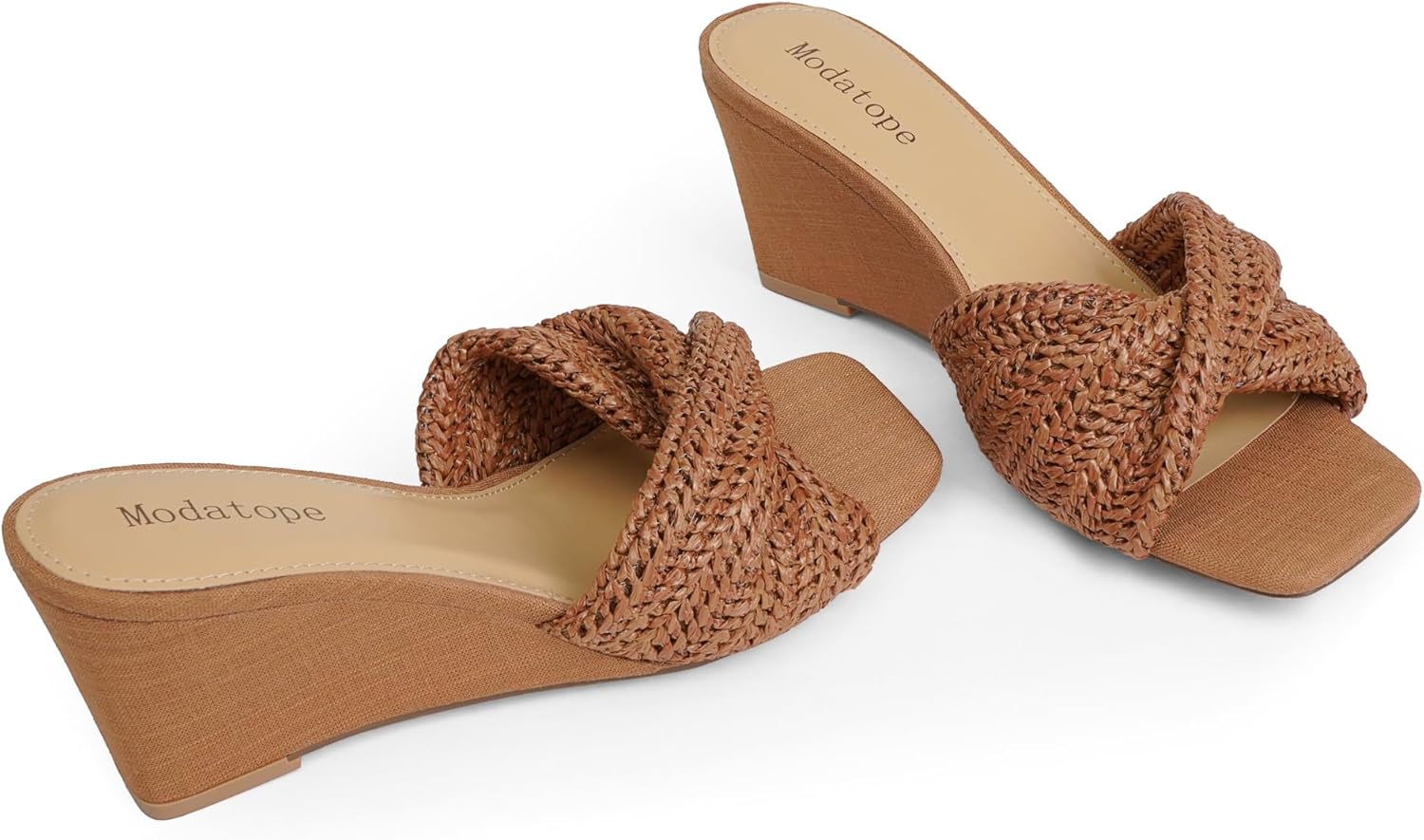 Modatope Wedge Sandals for Women Braided Wedge Heels Square Open Toe Raffia Dressy Womens Sandals