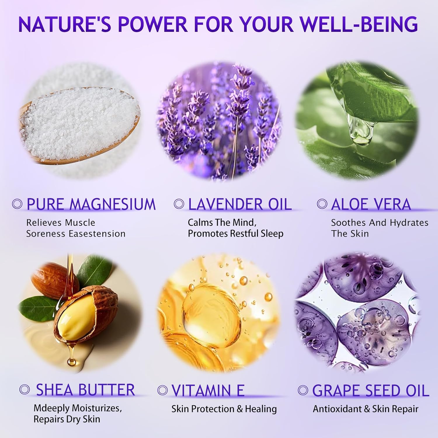 【Natural & Safe Ingredients】:Crafted with high-quality, plant-based ingredients, this magnesium cream for leg cramps and pain is free from artificial dyes, parabens, and harsh chemicals. Gentle enough for daily use, it’s suitable for sensitive skin and safe for the whole family.