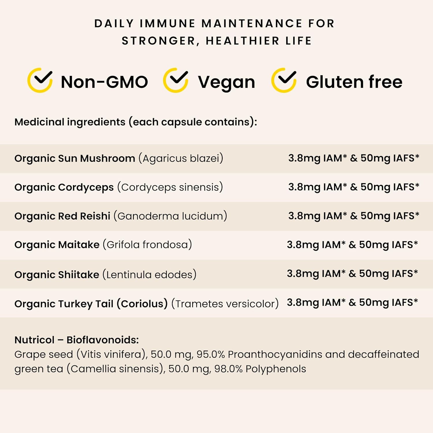 PURICA – Immune 7 Complex, 120 Vegan Capsules 120-Day Supply – Blend of Organic Sun Mushroom, Cordyceps, Red Reishi, Maitake, Shiitake & Turkey Tail for Daily Wellness & Balance, Non-GMO & Gluten-Free