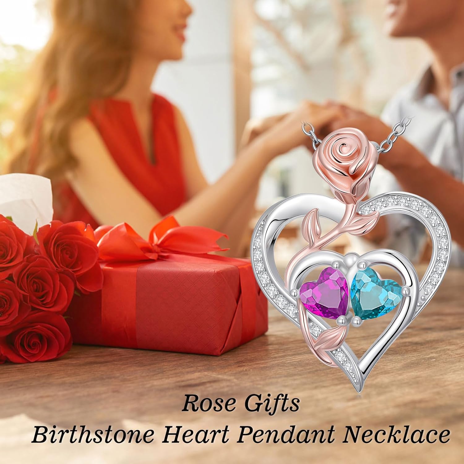 Rose Flower Heart Pendant for Women Birthday Gifts 18k Gold Plated Mother Daughter Necklace with 12 Months Birthstone Christmas Valentines Day Gifts for Her Mom Anniversarry Jewelry for Mom Wife Girlfriend