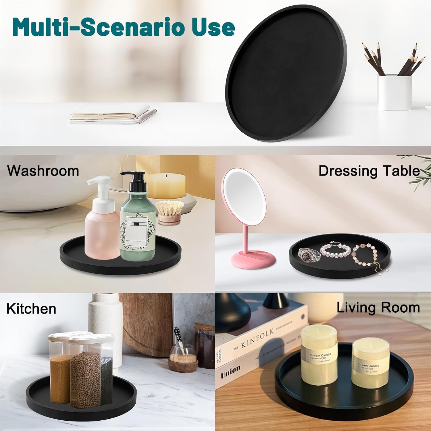 【Perfect Size & Spill-Proof Design】: With an outer diameter of 9 inches and an inner diameter of 8.58 inches, this compact tray fits seamlessly into any space. The raised edges, measuring 0.24 inches thick, provide reliable spill protection, keeping your bathroom, kitchen, or coffee table tidy and clutter-free.