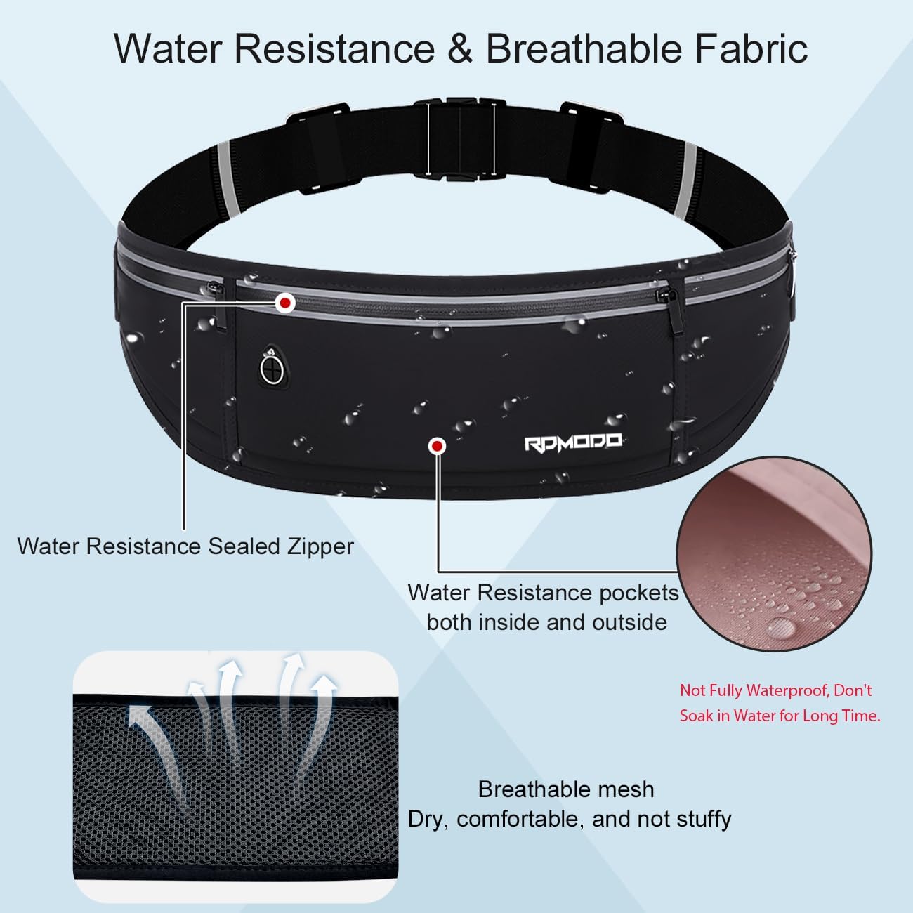 【Premium Material & Water Resistant】The fanny packs for women is make of Nylon and Spandex, which is soft, breathable and skin-friendly. The upgraded waist bag add water resistant coating to the front and back fabrics of the pockets, and with the sealed water resistant zipper, its water resistance performance is more outstanding. Running belt can protect your valuables from sweat, rain, and dirt (Not 100% waterproof, please don’t expose in rain for long time).