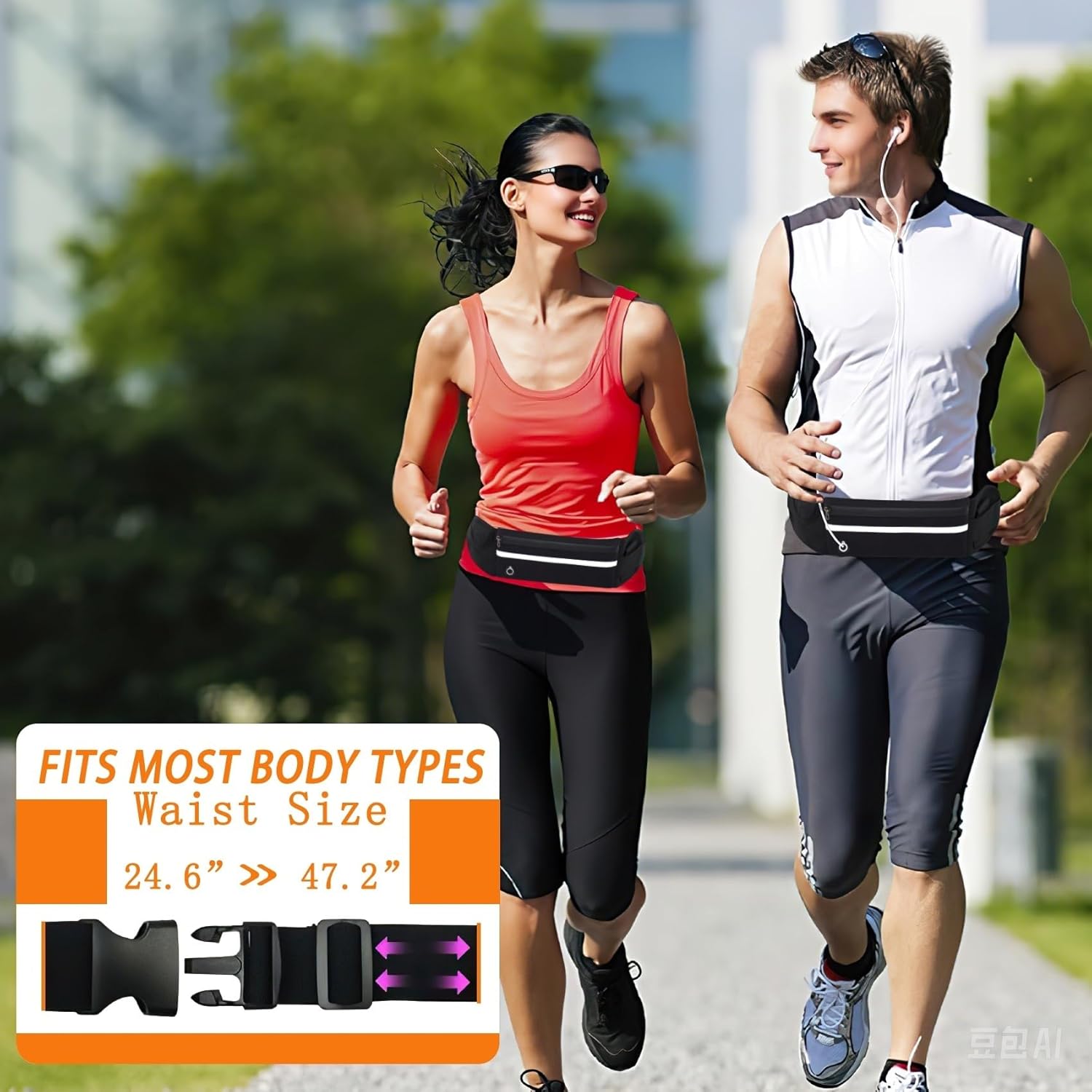 【Adjustable Waist Strap】: Running waist belt fits waist sizes from 26.4″ to 47.2″ with adjustable elastic strap, Prevents bouncing around while you running, jogging, walking etc.