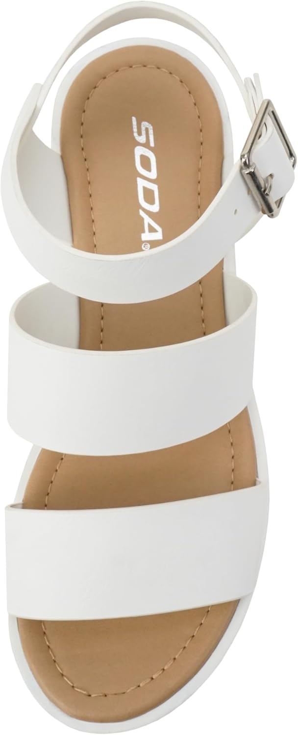 Soda ACCOUNT ~ Women Open Toe Two Bands Lug sole Fashion Block Heel Sandals with Adjustable Ankle Strap
