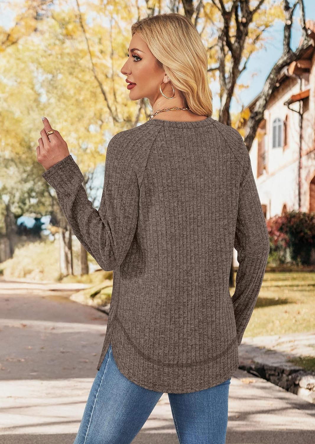 Womens Long Sleeve Tops Fall Shirts Ribbed Lightweight Tunic Sweaters Loose Fit