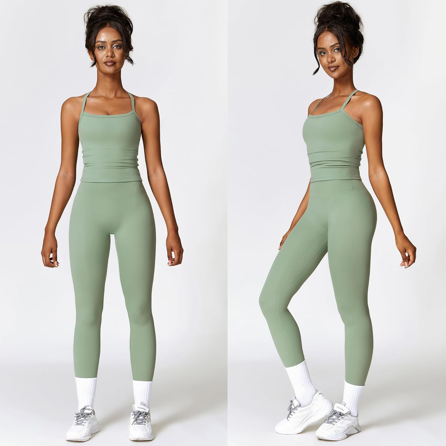 Women 2 Piece Workout Sets (2025 NEW) Yoga Outfit Open Back Tank Top High Waisted Leggings Gym Sets Tracksuits